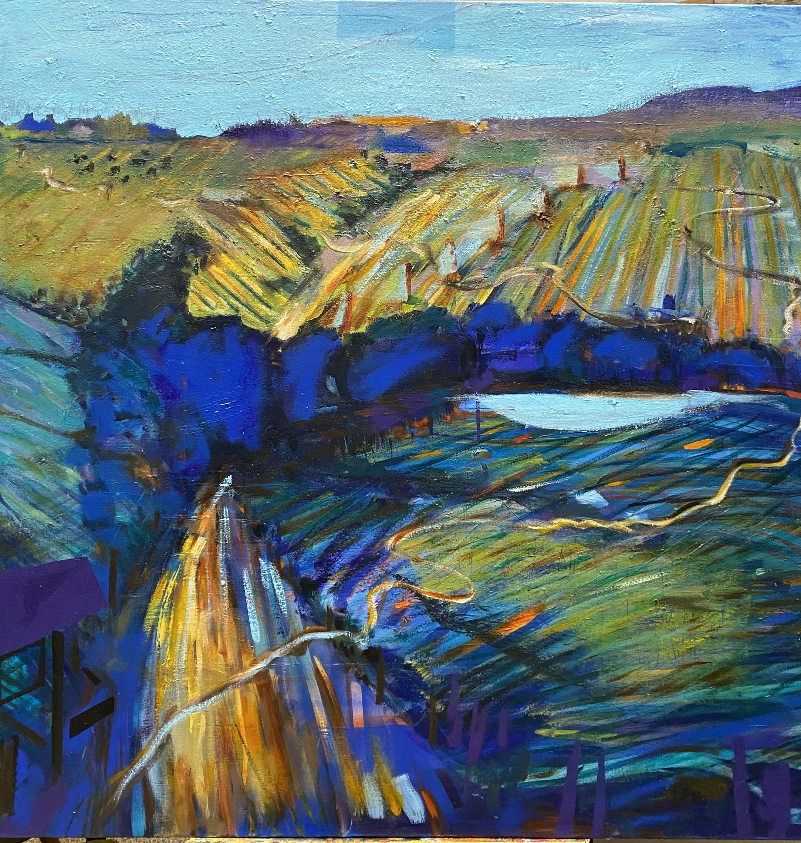 I paint to show the patterns, and atmosphere we grow our food in, to evoke a feeling as we travel through the fields. To invite questions from the viewer regarding the land.