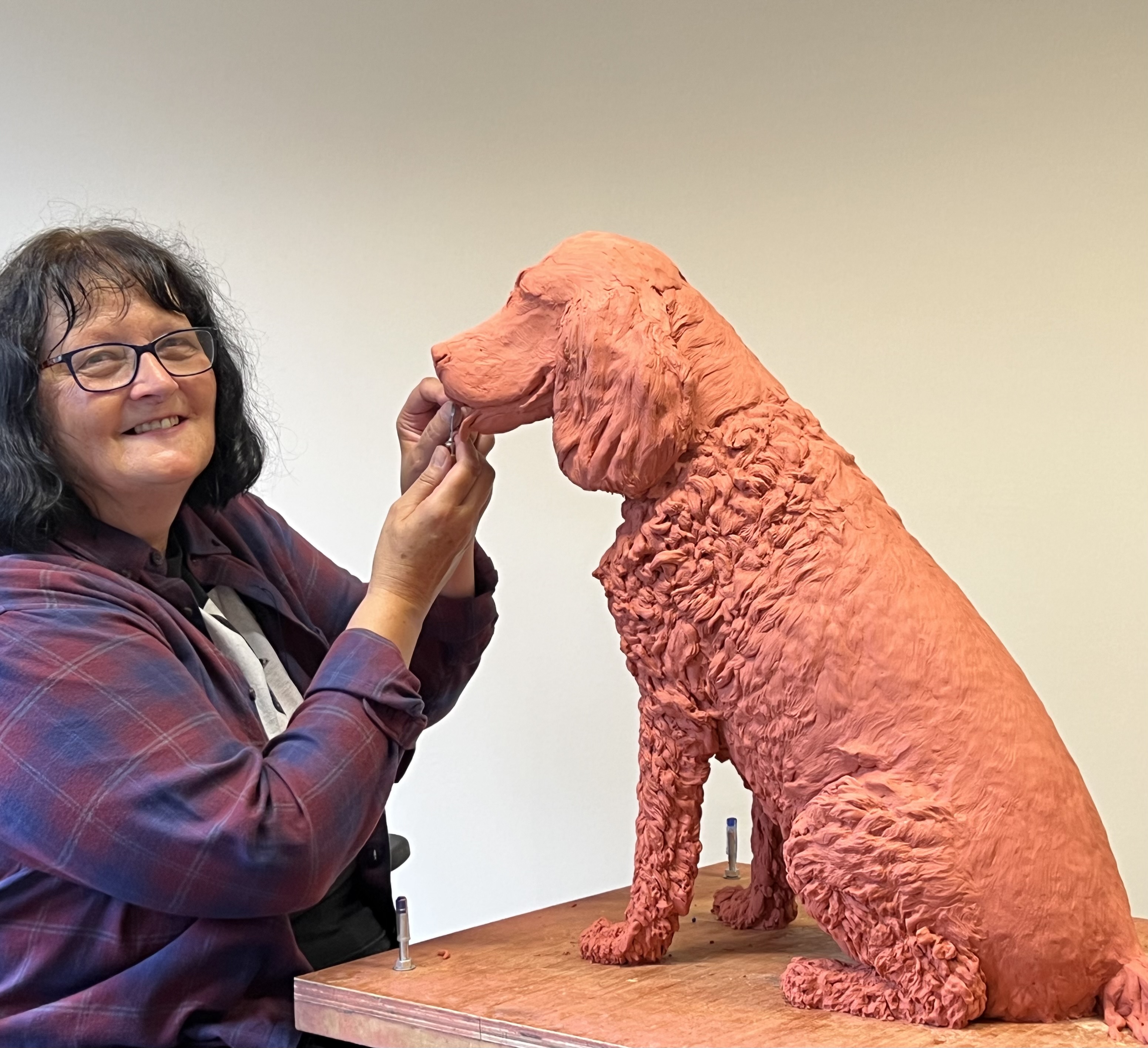 A selection of images of the long process of creating a life-sized portrait sculpture of a much loved dog - Celebrating life in sculpture.