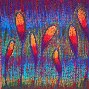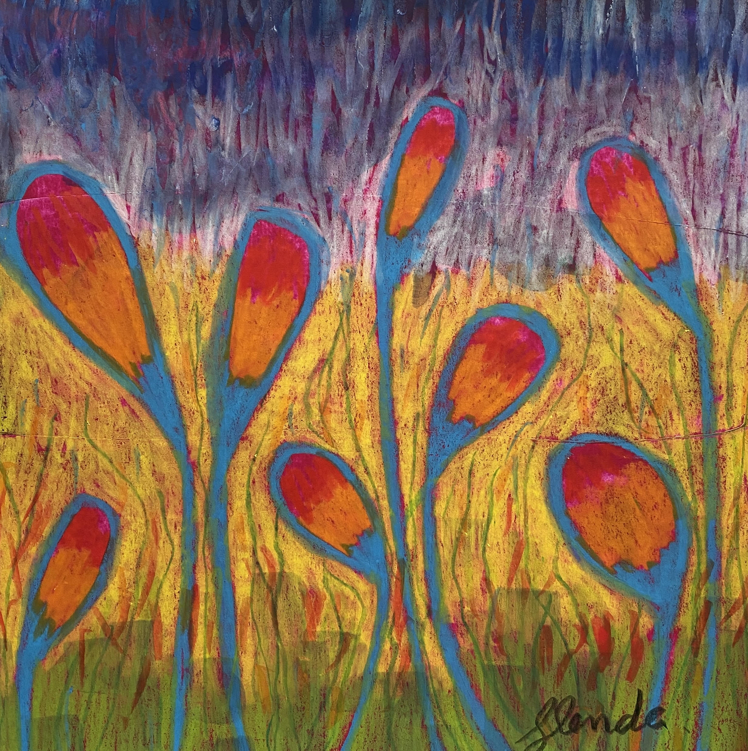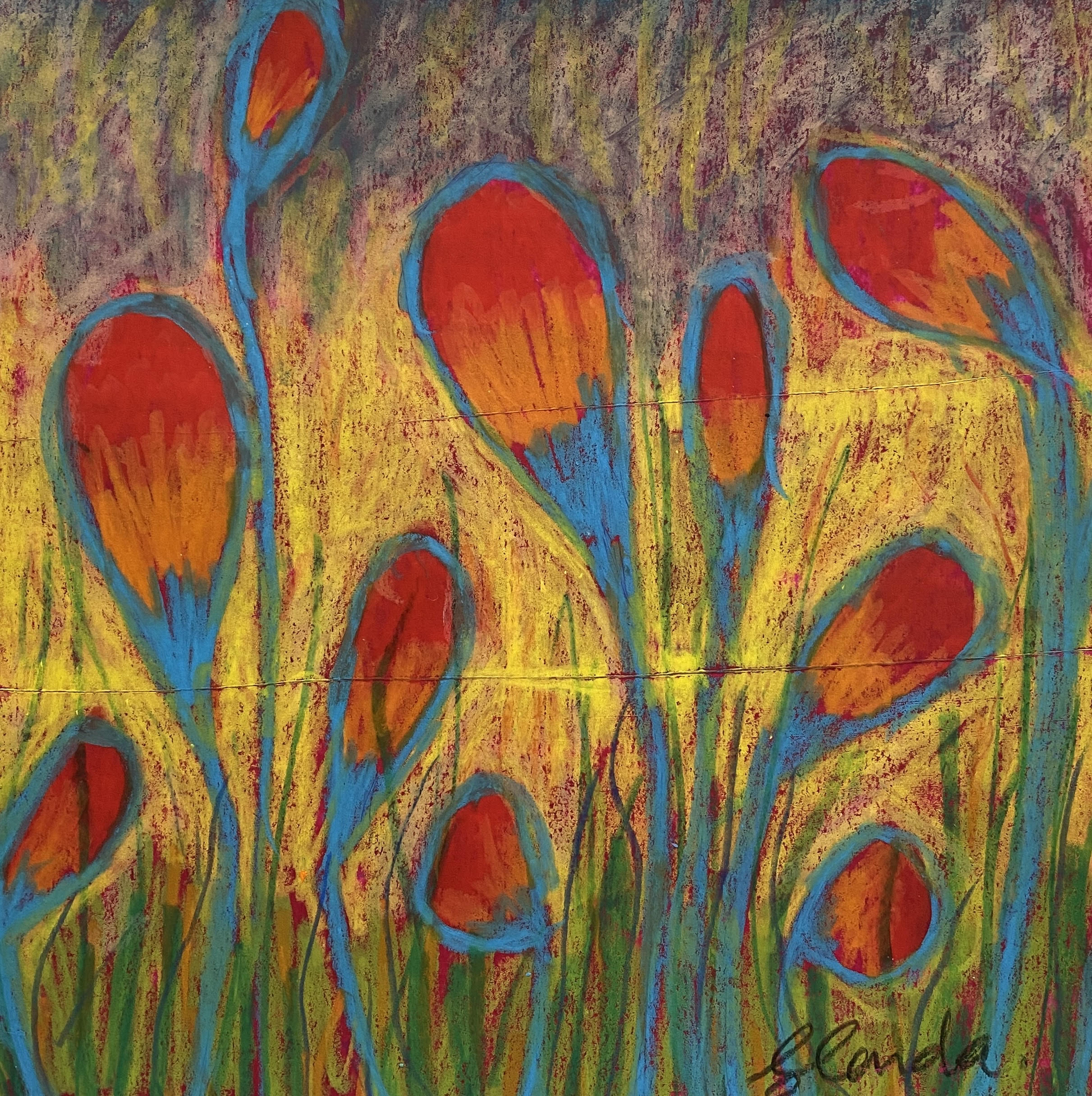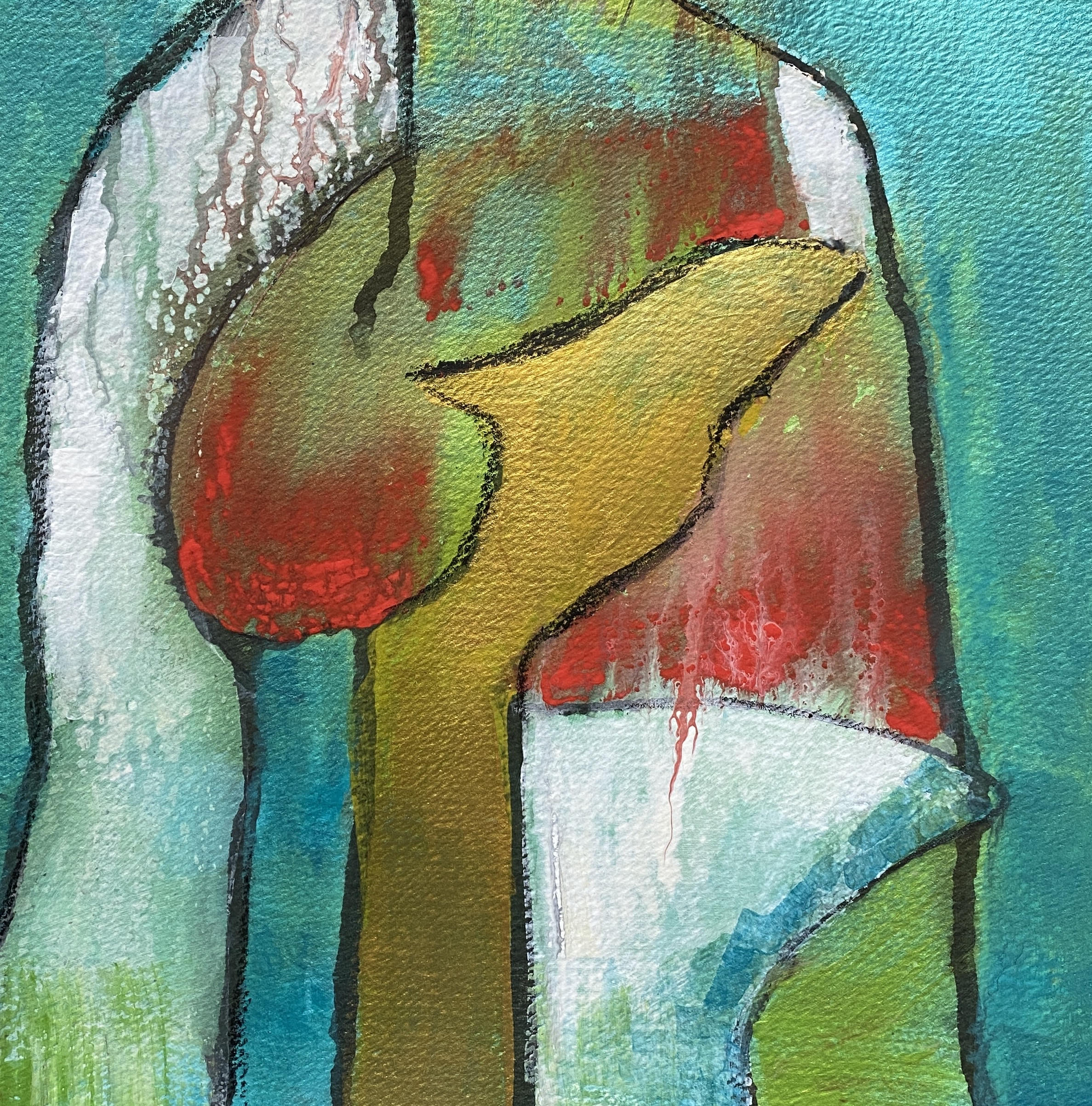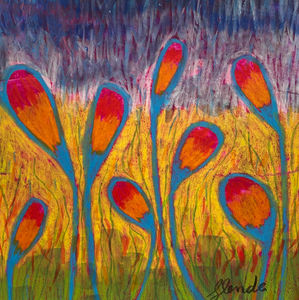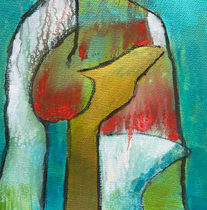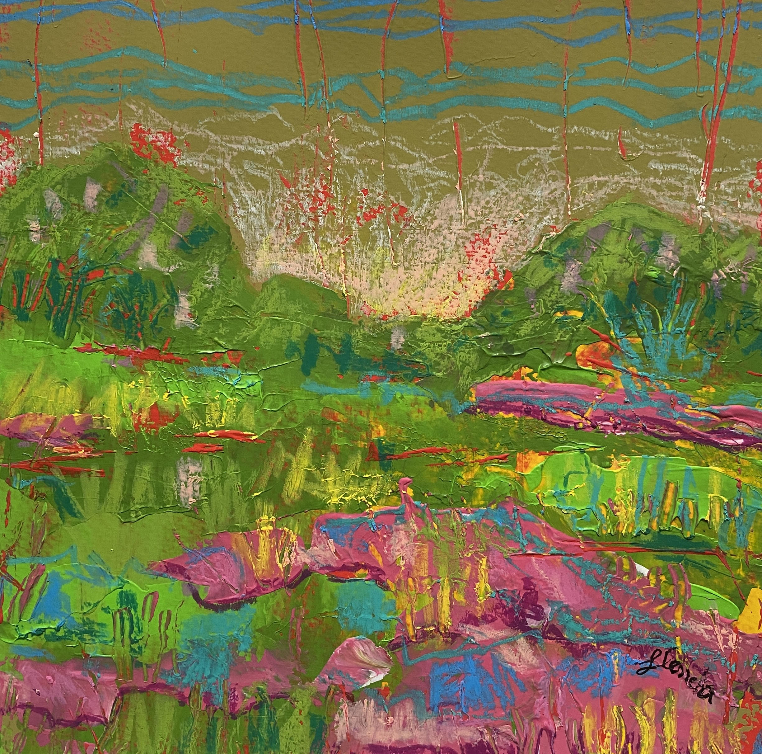 I like to work in squares and develop my ideas playing on paper with acrylics and other media. These works are usually small.