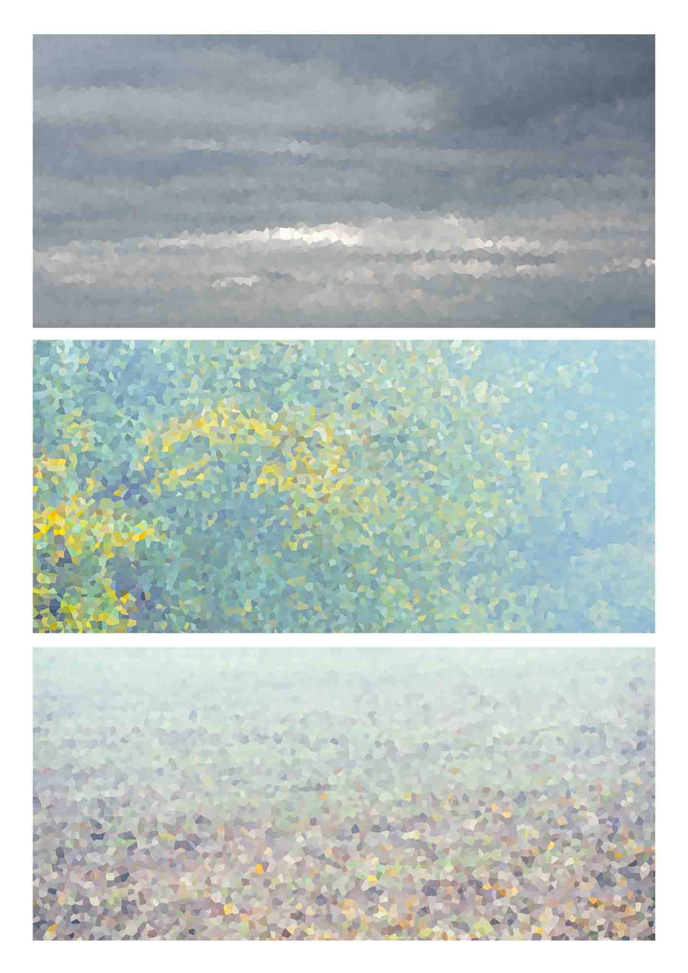 Seeking to photograph this landscape in a fresh, creative way, an attempt to describe what I see and feel, led me to this work. I decided to photograph foreground, middle ground and sky and then assemble into a vertical triptych. I further sought to reduce the detail to colour and pattern and there were several influences for this. The Impressionists, Paul Cézanne’s Mount Sainte-Victoire view from Louvres (1904), and the almost pixilated brushwork effect created by Paul Signac in Capo di Noli (1898) were a start. George Seurat the creator of Pointillism, La Seine à la Grande-Jatte (1888) and Bridgit Riley’s homage to Seurat, Pink Landscape (1960), are all influences although the work is perhaps more object, rather than colour, separation. The prints, much like impressionism look different when viewed closely, or from a distance. I am also drawn to the work of Mark Rothko and other colour field artists of the Abstract Expressionist period including Ad Reinhardt, Josef Albers and Hans Hofmann. I did discover the work of another artist, after I started this work, Brice Marden. Marden’s ‘For Pearl’ (1970), a vertical triptych of blocks of colours representing the south of France. Originally called ‘A Mediterranean Painting’ Marden changed the name following the death of Janis Joplin. Available as A4 or A3 giclee Epson premium semi-gloss prints: https://robin-stewart.sumupstore.com/