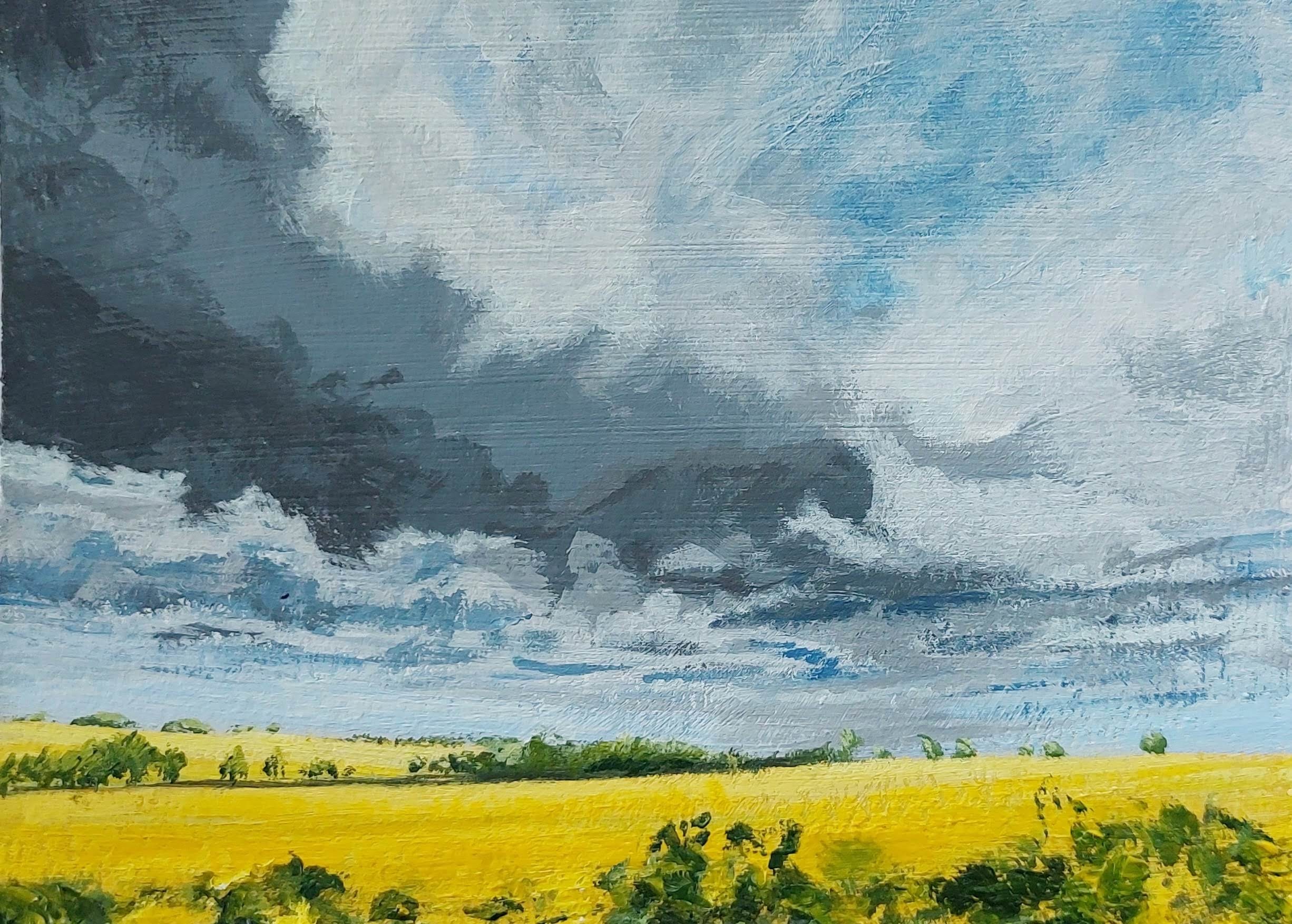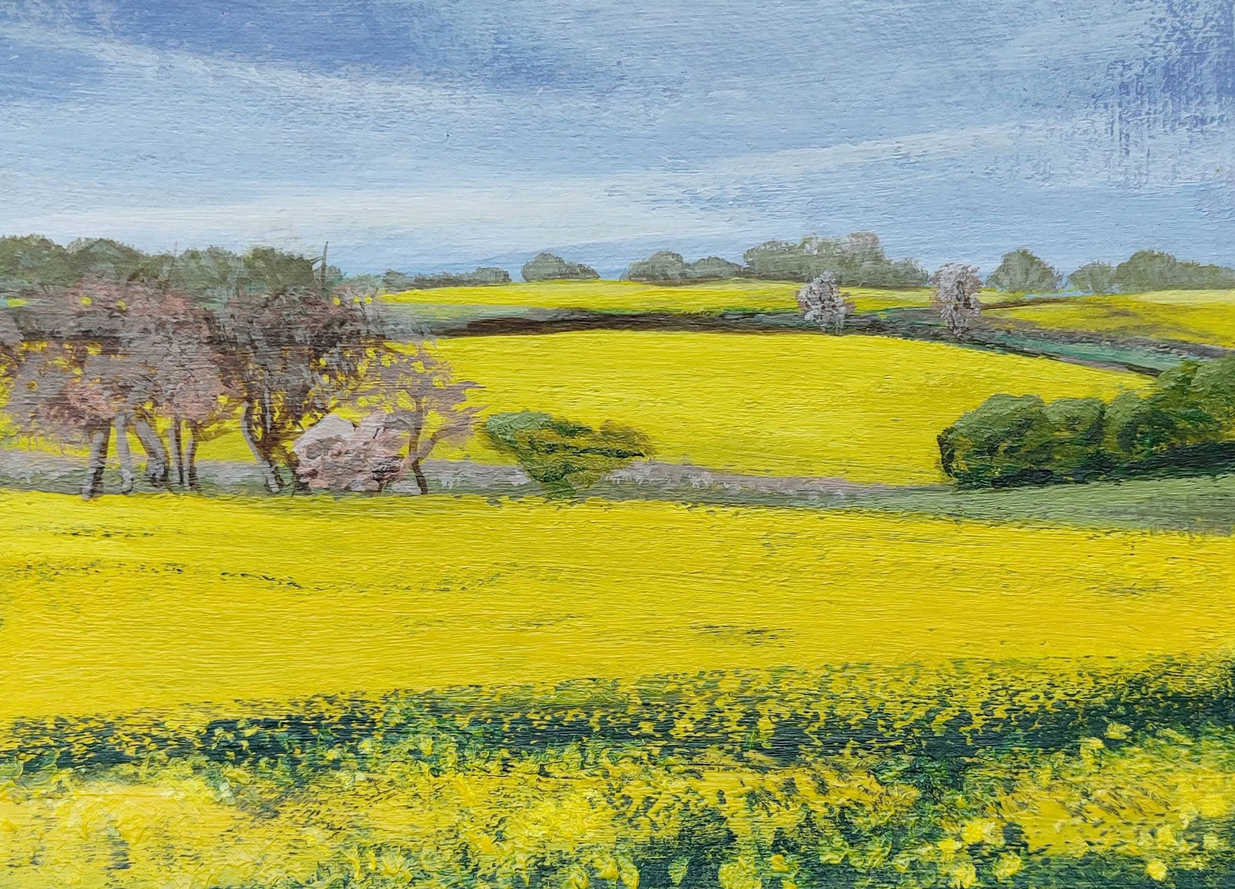 During springtime, the arrival of the acid-yellow fields of oil-seed rape across Northamptonshire, signals new painting opportunities. I simply love using this vivid colour when painting special rural farmland, fields and tracks.