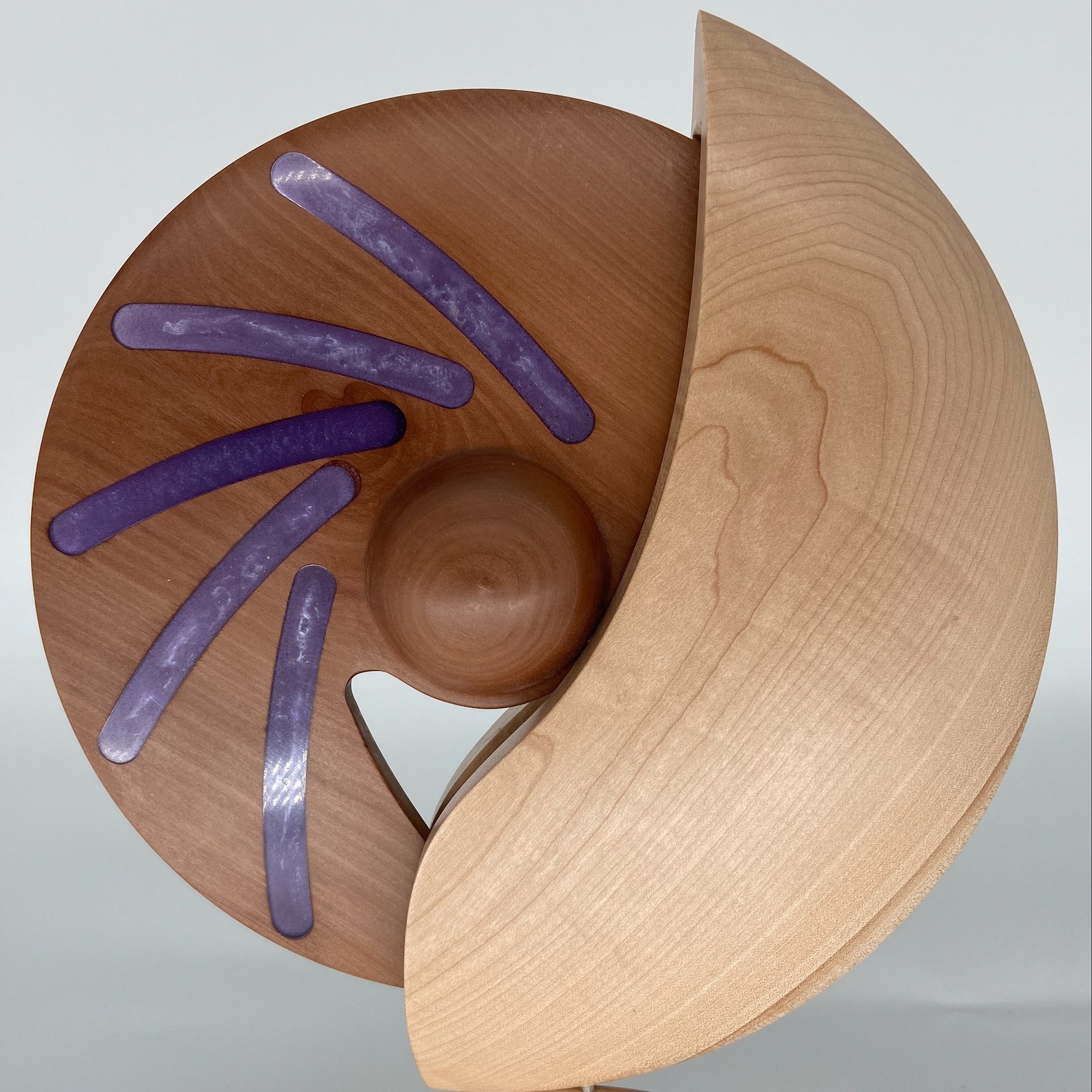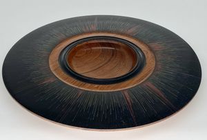 I use several species of wood to create my work and try to select pieces with character. Where the piece speaks for itself I finish with a clear wax or oil, and on plainer timber, I use colour and texture to embellish the finished work.