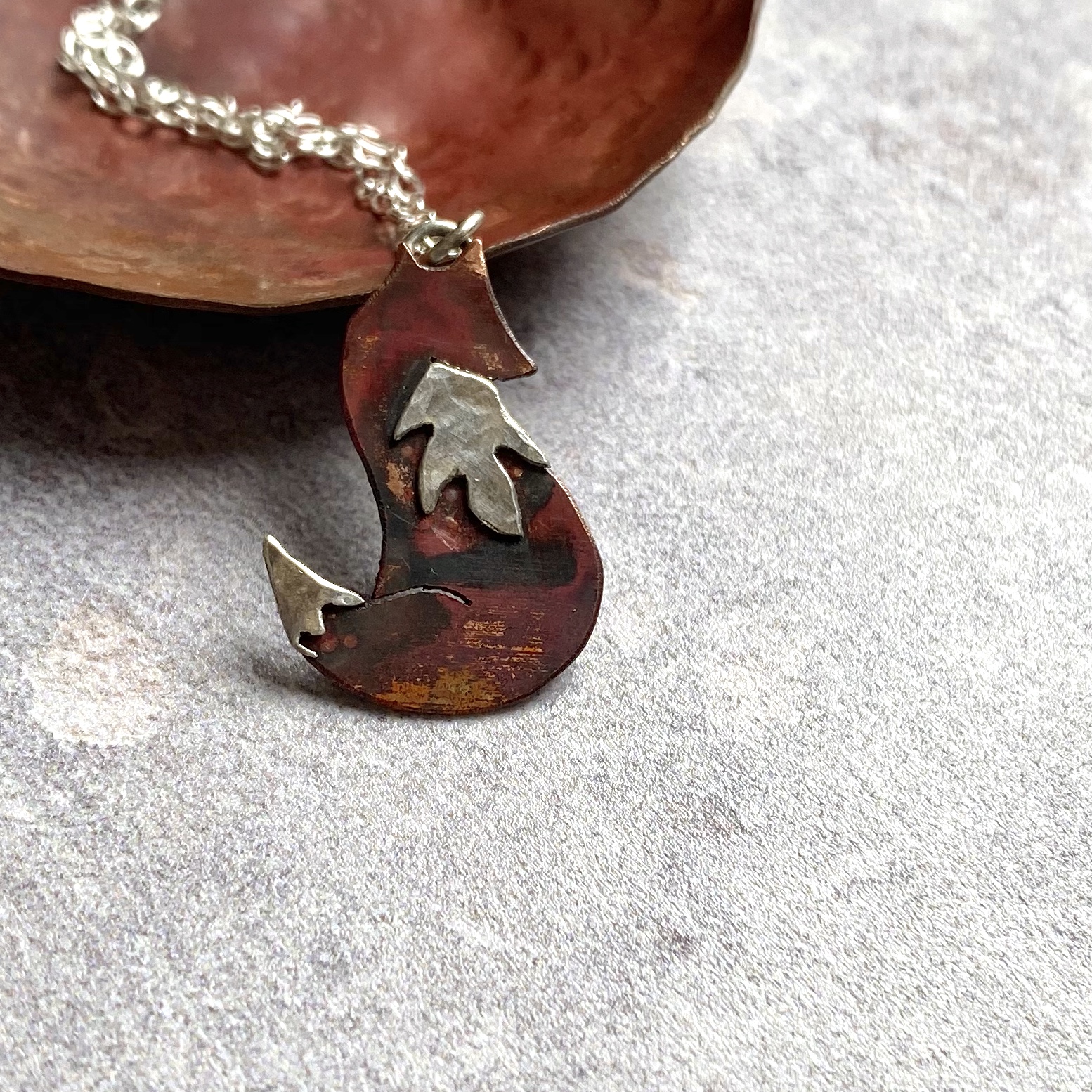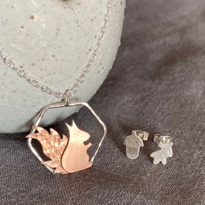 Being inspired by her love of the natural world around us each piece in this collection is designed and made by Zoë from sterling silver and copper. Taking recognisable shapes and forms, and finding interesting textures and markings, Zoë intends the jewellery from her In The Garden collection to bring about happy thoughts and smiles to the wearer of their own adventures in nature.