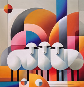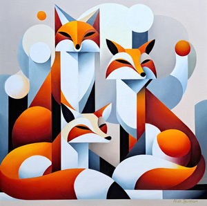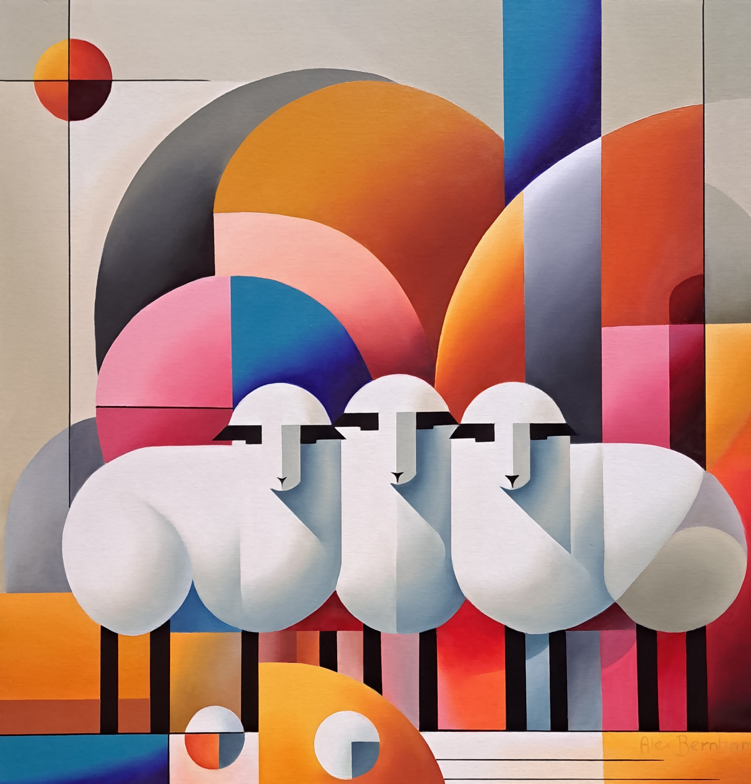 I take my inspiration from the Cubist painters using geometric shapes, fragmented forms, overlapping planes, and bold contrasts of color. Using blocks of colour, sharp lines and sweeping curves, I paint with the simple intention of bringing a touch of levity into daily life.