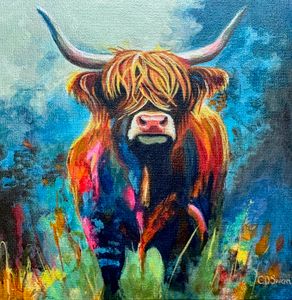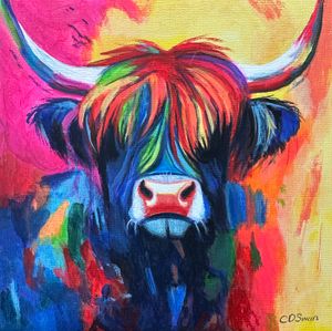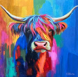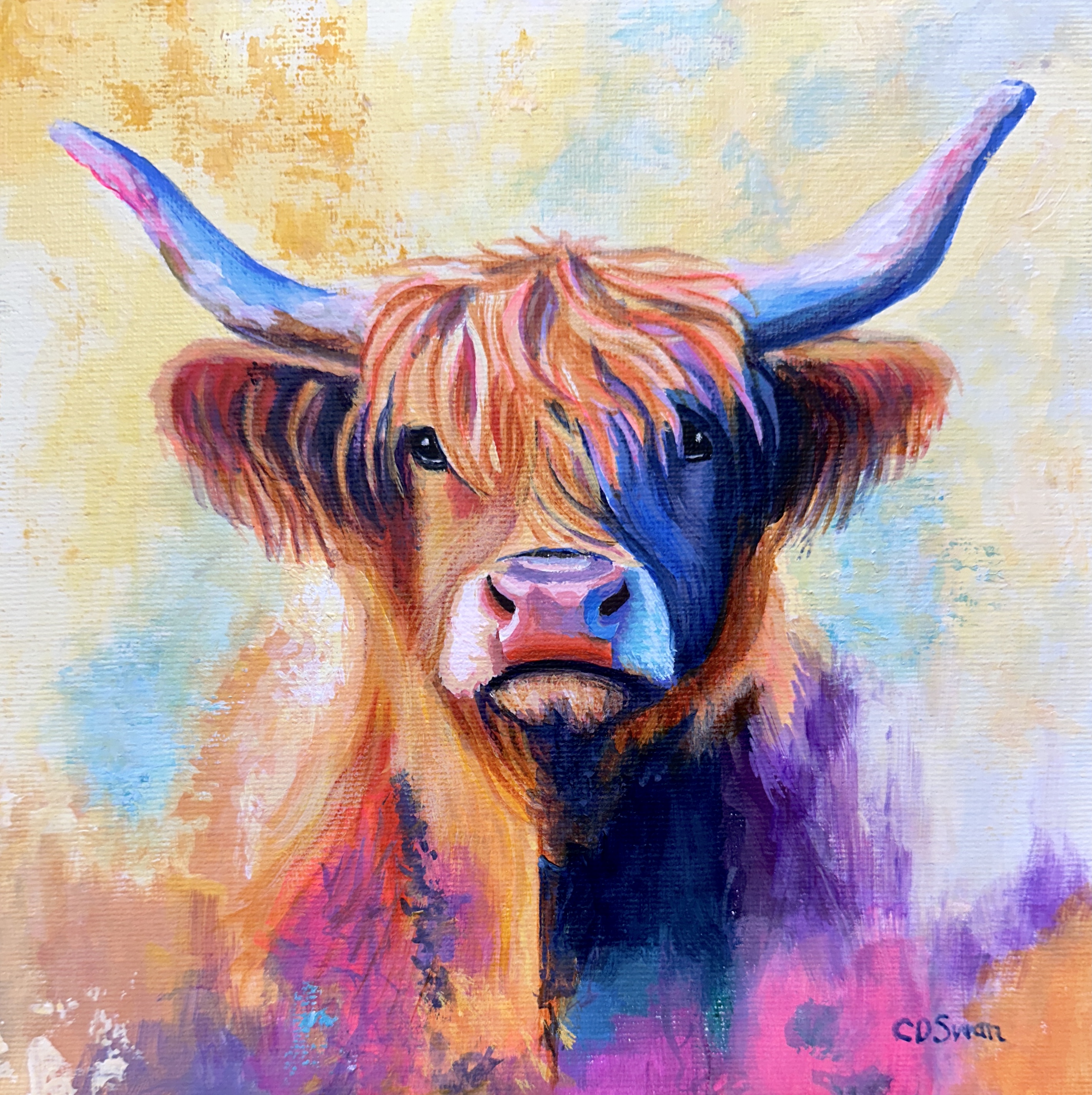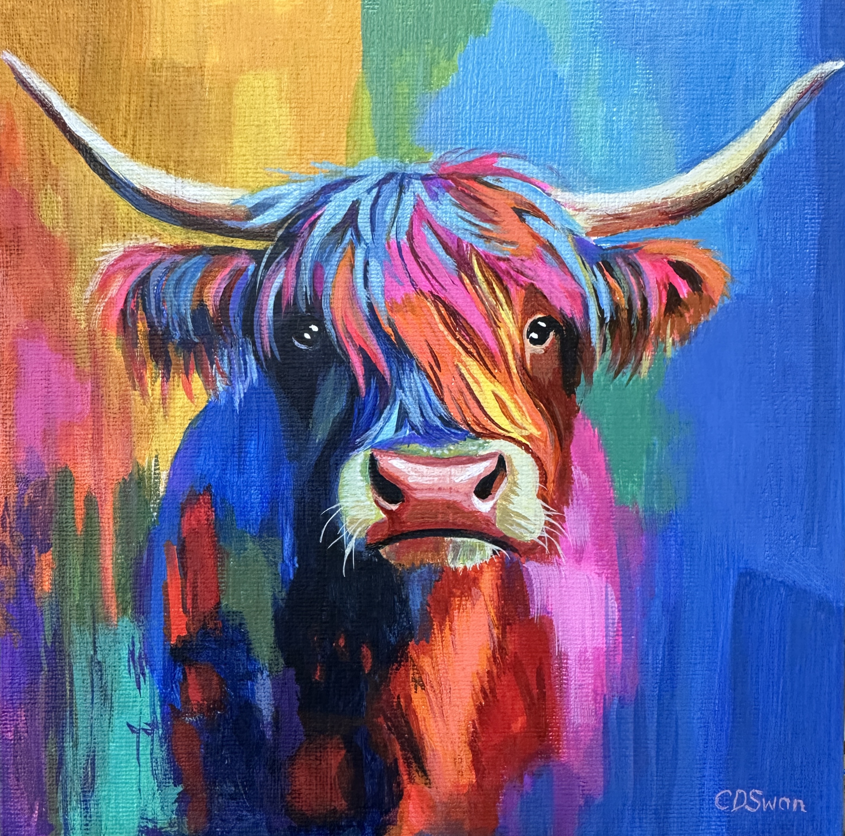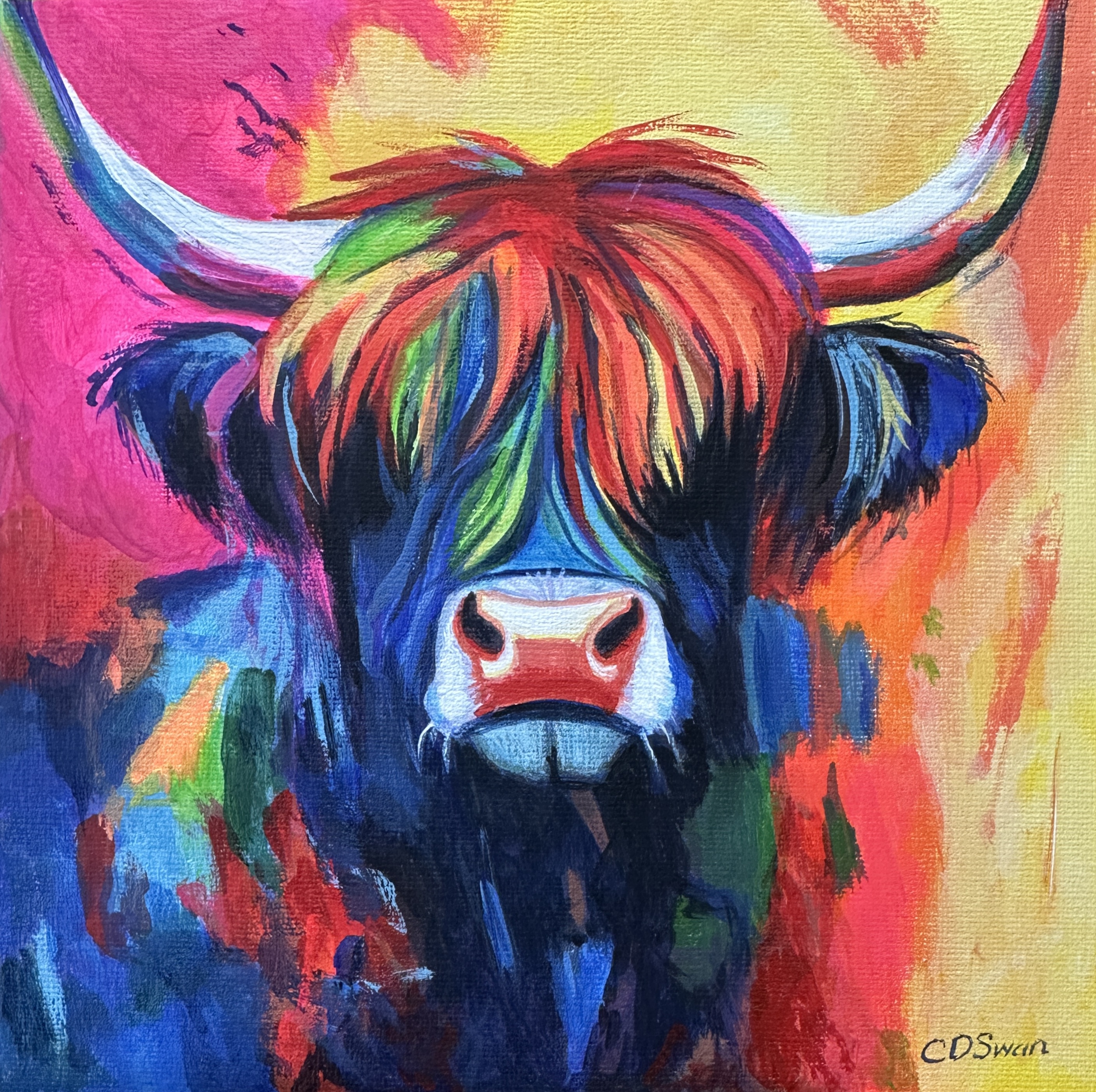 A vibrant, characterful selection of Highland cow paintings in bold acrylics, capturing their spirit, enhancing their colour, bringing a charm to brighten any space.