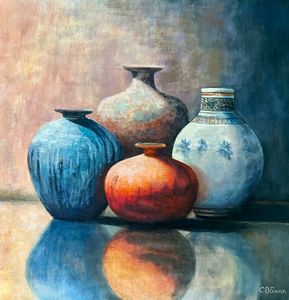 This collection of still life paintings explores the quiet beauty of everyday objects—pots, urns, vessels, and treasured items arranged with care. Each piece highlights the interplay of form, texture, and light, transforming simple objects into timeless subjects. From the warmth of burnished copper to the subtle elegance of ceramics, these works evoke a sense of balance, harmony, and contemplation.